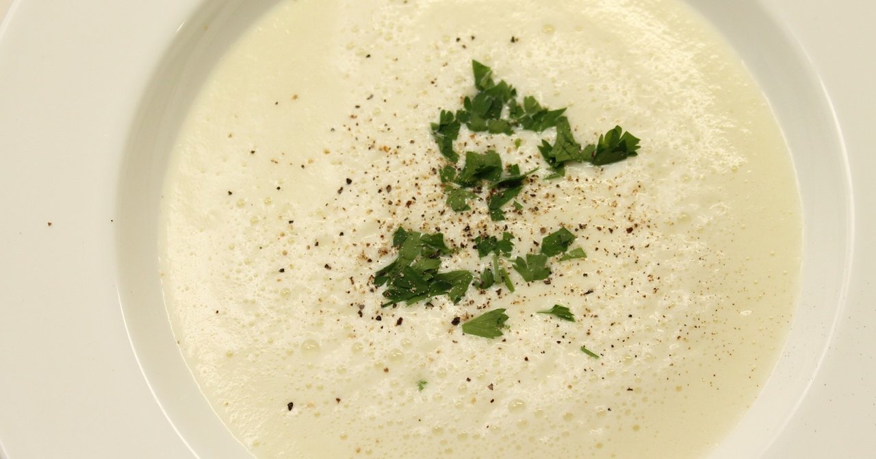 いくつかレシピが見つかった中でこれがいいなと思ったのは、電子レンジを使って合理的なことと、作り方が理にかなってるなあと思ったこと、そして何より簡単そうだったこと。新玉ねぎをカットして・バターとオリーブ油足してレンジでチンして・冷めてから塩と牛乳足してミキサーで潰して(僕はハンドブレンダー使いました)・温めるだけ。