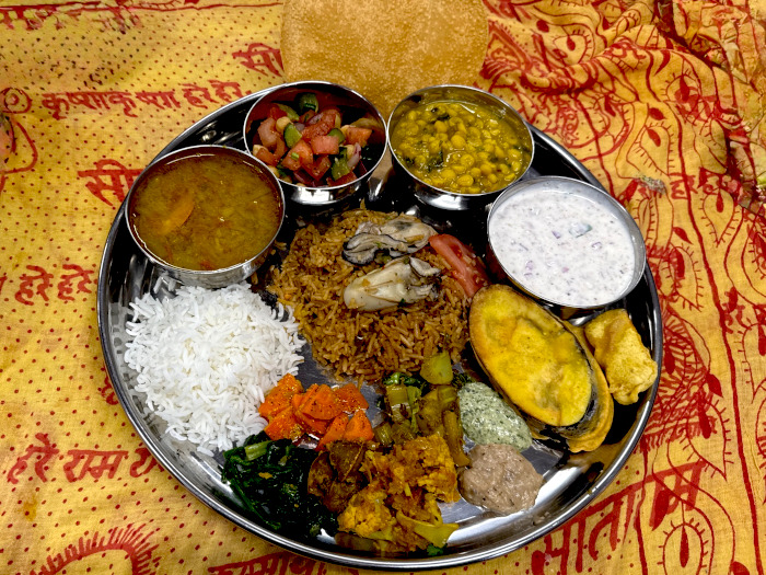カキのビリヤニできあがりの図。全面カキだらけですごい迫力です。