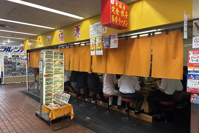 オープンしてから1年半の「幸福源」。けっこう評判が良さげなので初めて行ってきました。カラーリングがいかにもなのと、暖簾で様子がよくわからないのでちょっと入りにくいですが、コの字のカウンター席の中で中華系のご夫婦がガンガンに頑張ってはります。
