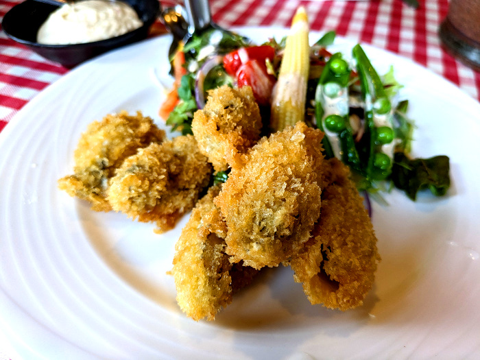 こばやしさんリクエストで事前にお願いしておいたカキフライ。「アホほどカキを食べる宴会」のもおいしいけど、こちらのはプロの旨さ。タルタルソースもおいし。
