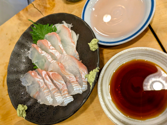 価格の割りには造りの盛りも質もいいし、わざわざ煎り酒もつけてくるとはなあと、いきなり感心しました。