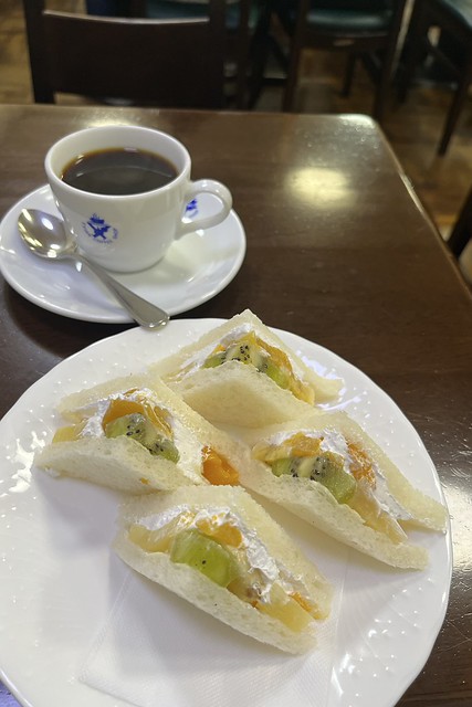 ちょっと甘いものが欲しくてフルーツサンドセット。コーヒー高騰のおり、これで700円はすごく値打ちがありました。