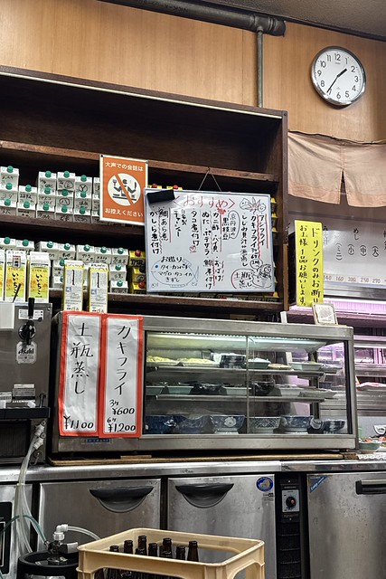 どっちにしようか一瞬迷ったけれど、瓶ビール(650円)が飲みたかったのでカキフライの小(3ケ600円)。マヨネーズは使わずレモンと塩で。今シーズン初カキフライかな。けっこう粒が大きく、3ケでも食べ応えありました。