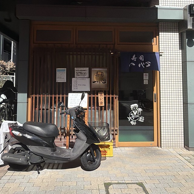 たまにランチをいただきに行っている寿司「一心」で昼飲みがしたくて、えて吉さんにつきあってもらいました。平日の開店直後、予約無しで無事カウンター席に。