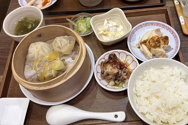 蒸篭にはでっかいサイズの点心が3種、その他唐揚げ・蒸し鶏・サラダ・スープ・漬け物など、少しずつながら盛りだくさん。僕らの後にもお客さんが次々とやってきてさぞやてんてこまいだろうに、それでもできるだけ作り立てを食べて欲しいという心意気が感じられて、好感が持てました。