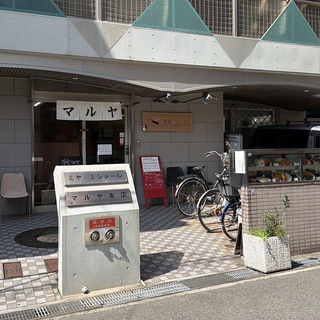 店名に「マルヤ」がつく洋食店(中華もやってるお店もあり)がいくつかあります(詳しくは後述します)。そのうち永年の課題店「マルヤ都店」にやっと行くことが出来ました。「マルヤ」の赤文字の上には緑の文字で「洋食中華」のネオンサイン。大通りに面して...